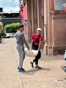 En las primeras horas del día, se aperturó el centro de acopio afuera de la presidencia municipal, con la finalidad de recibir víveres para la población que está sin poder trabajar en sus comunidades.