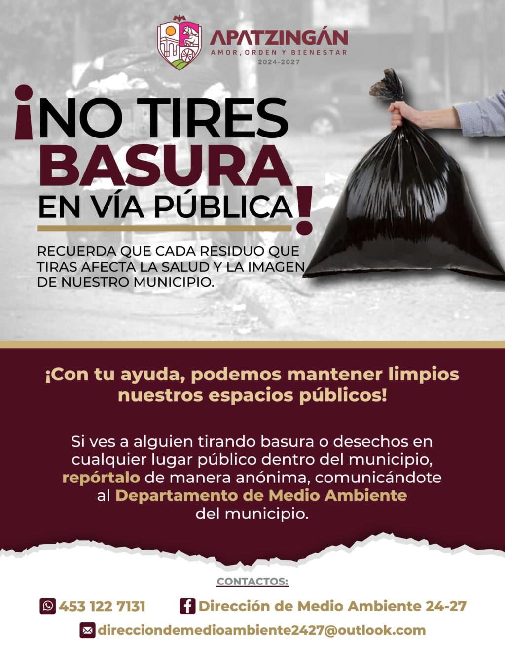 El Gobierno de Apatzingán que encabeza la presidenta Fanny Arreola Pichardo a través de la Dirección de Ecología y Medio Ambiente, exhortó a la población para evitar dejar basura en avenidas y calles principales, puesto que se provoca una mala imagen para el municipio.